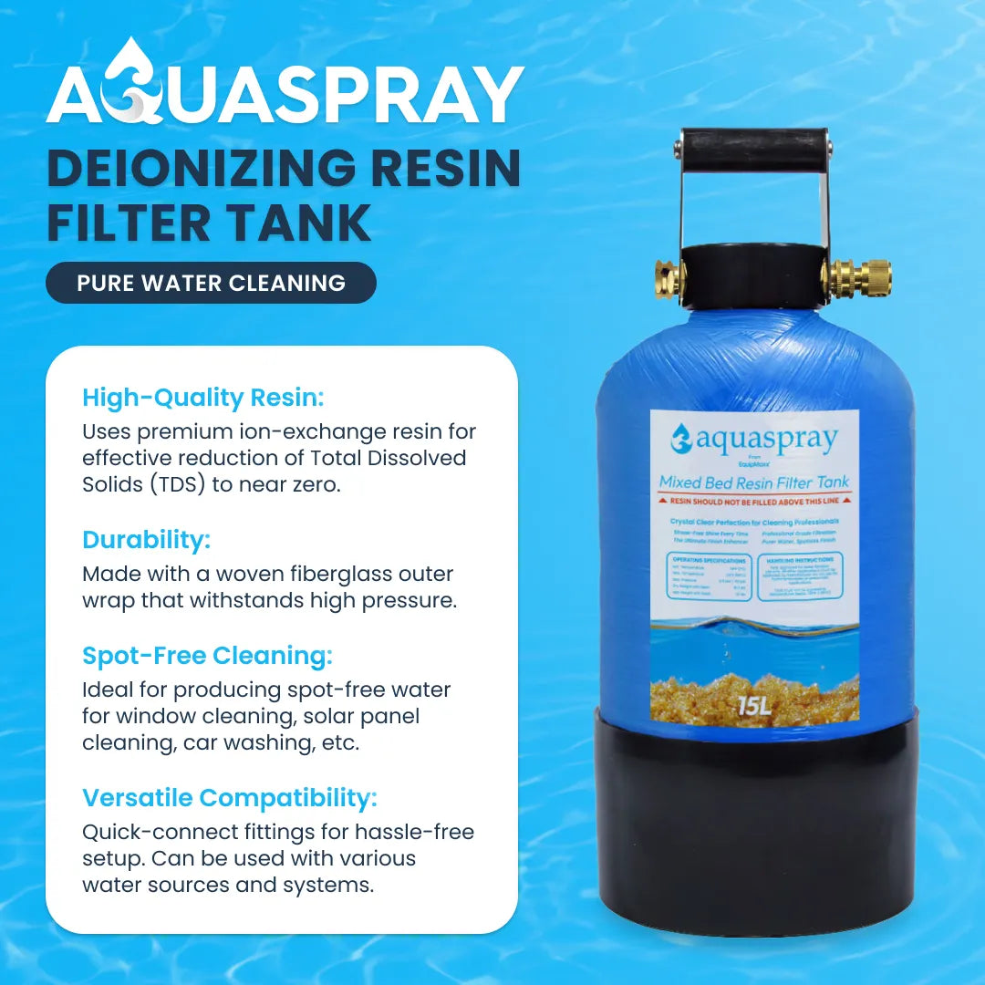 Superior Filtration with Mixed Bed Resin: The 4-gallon deionizing resin tank uses (3) 5L bags of mixed bed resin to remove dissolved solids, delivering purified, streak-free water.