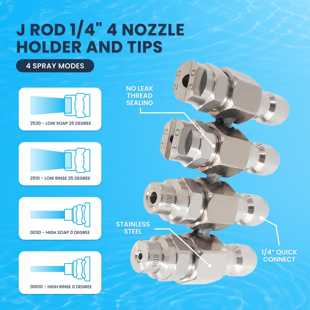 J Rod 1/4" 4 Nozzle Holder and Tips for 4GPM Pressure Washers