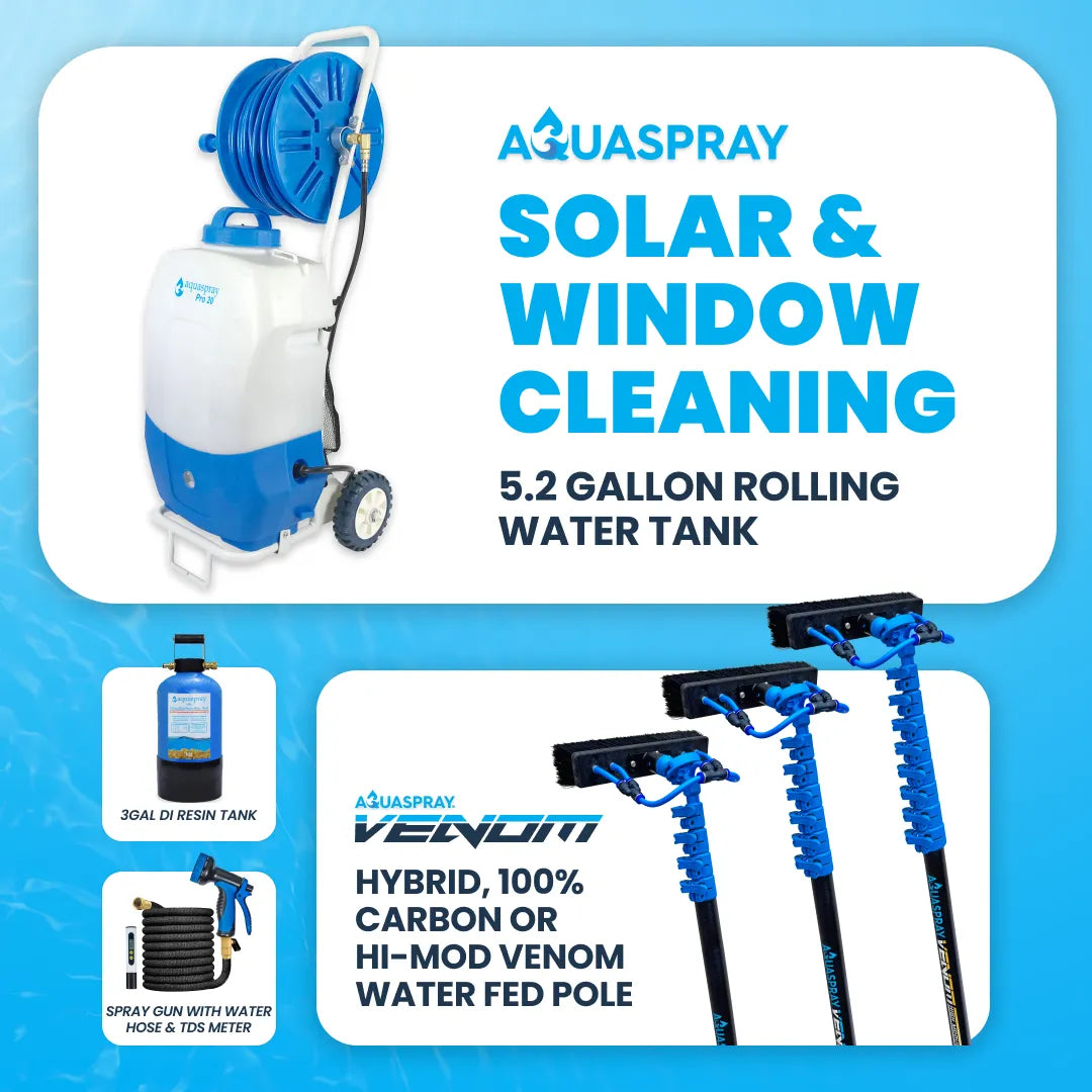 AquaSpray Pro 20 – 5.2 Gallon Battery-powered Water Pumping Tank with 3 Gallon Resin Tank and Venom Water Fed Pole for Window and Solar Panel Cleaning