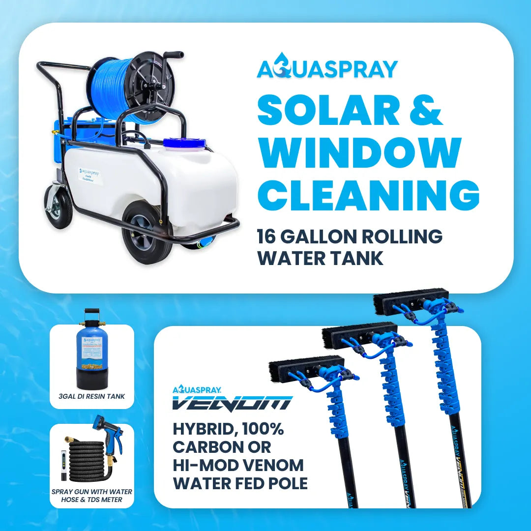 This all-in-one solution gives professional cleaners the freedom to move, the reach to tackle any job, and the power to deliver crystal-clear results—no water source required. Perfect for mobile window cleaning businesses, solar maintenance companies, and anyone tired of lugging hoses or dealing with hard water stains.